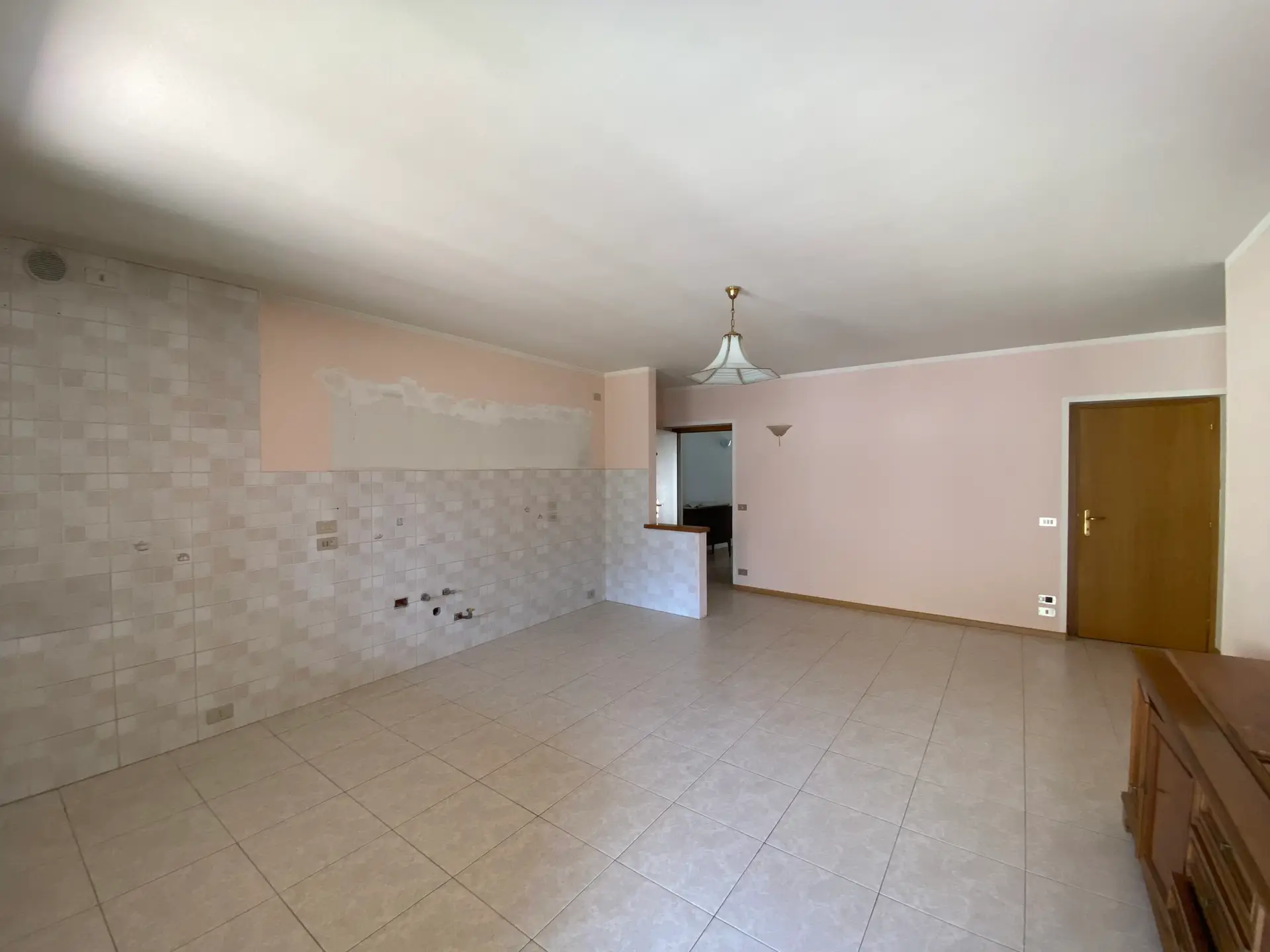 Al piano rialzato troviamo un ampio locale commerciale, precedentemente adibito a bar, con affaccio diretto su strada, uno spazio luminoso, visibile e ben distribuito, ideale per attività o uffici. Sullo stesso livello si sviluppa il primo dei cinque appartamenti, l’unico completamente rifinito, con finiture risalenti ai primi anni 2000.