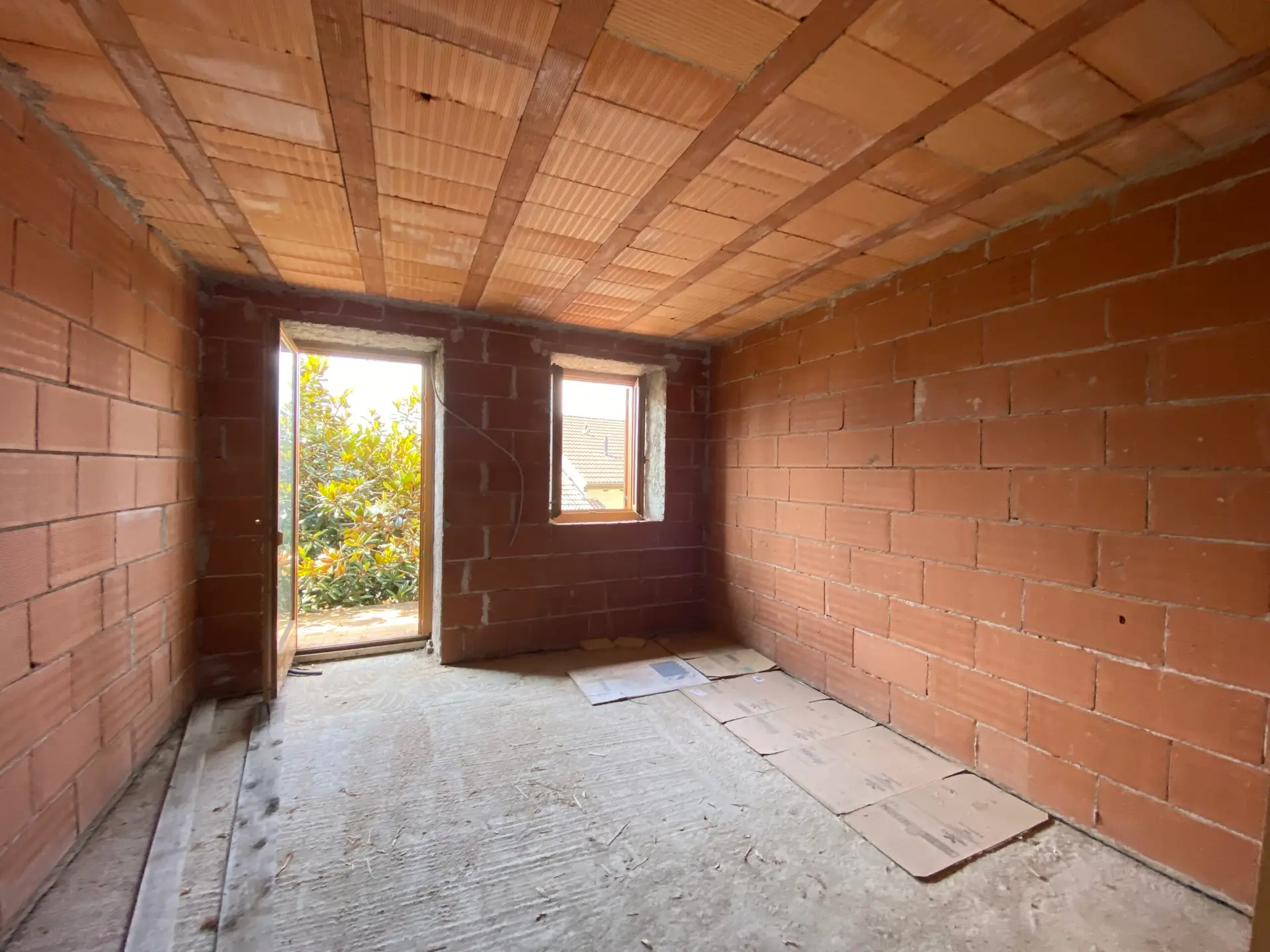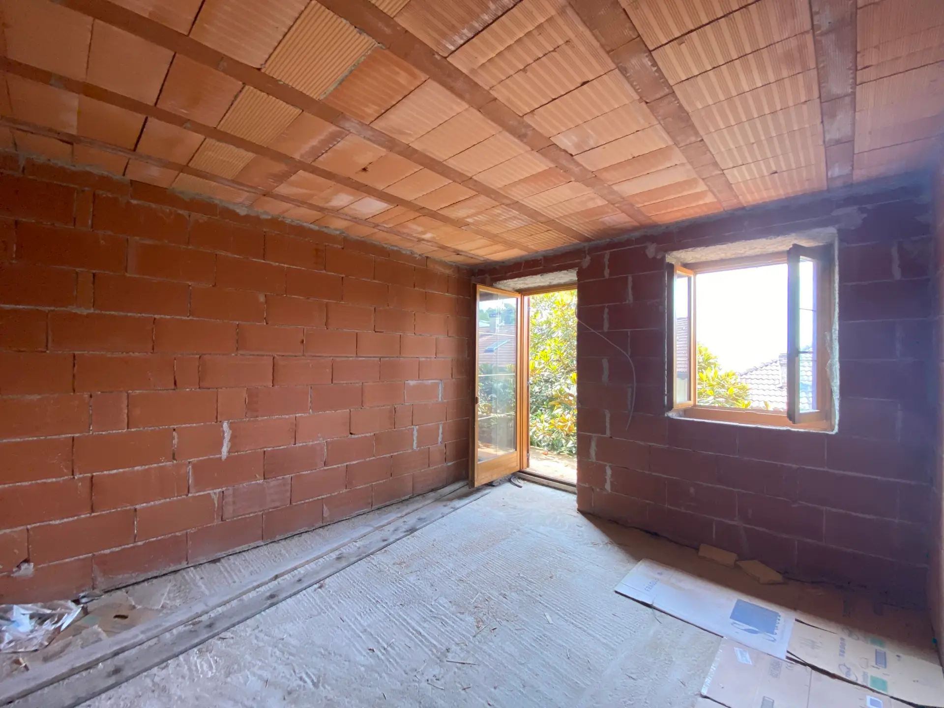 Ai piani superiori, primo e secondo, si trovano le quattro unità abitative al grezzo, da completare secondo le proprie esigenze. Tre di questi appartamenti prevedono una disposizione con ingresso su zona giorno, cucina e soggiorno, due camere da letto e un bagno; due di essi dispongono anche di uno spazioso balcone con buona esposizione. Il quarto appartamento, più compatto, è composto da zona giorno open space, una camera e un bagno.