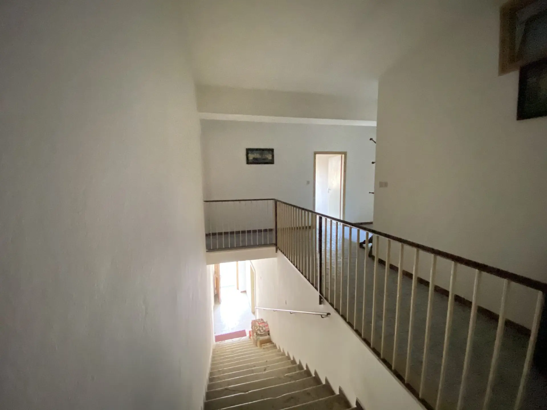 La struttura si distingue per le dimensioni generose e per la distribuzione degli spazi. Al piano terra troviamo cinque cantine di ampia metratura, uno spazioso garage e la centrale termica: ambienti che possono essere valorizzati e riorganizzati in base alle necessità, offrendo spazio per deposito, taverna, locali hobby o ulteriori sviluppi. Salendo lungo un’importante scalinata in sasso, elemento architettonico che dona carattere e autenticità all’edificio, si accede all’abitazione principale. Qui si sviluppano una cucina abitabile, un soggiorno, cinque stanze da letto e un bagno, con metrature che consentono una completa ridefinizione degli ambienti interni.