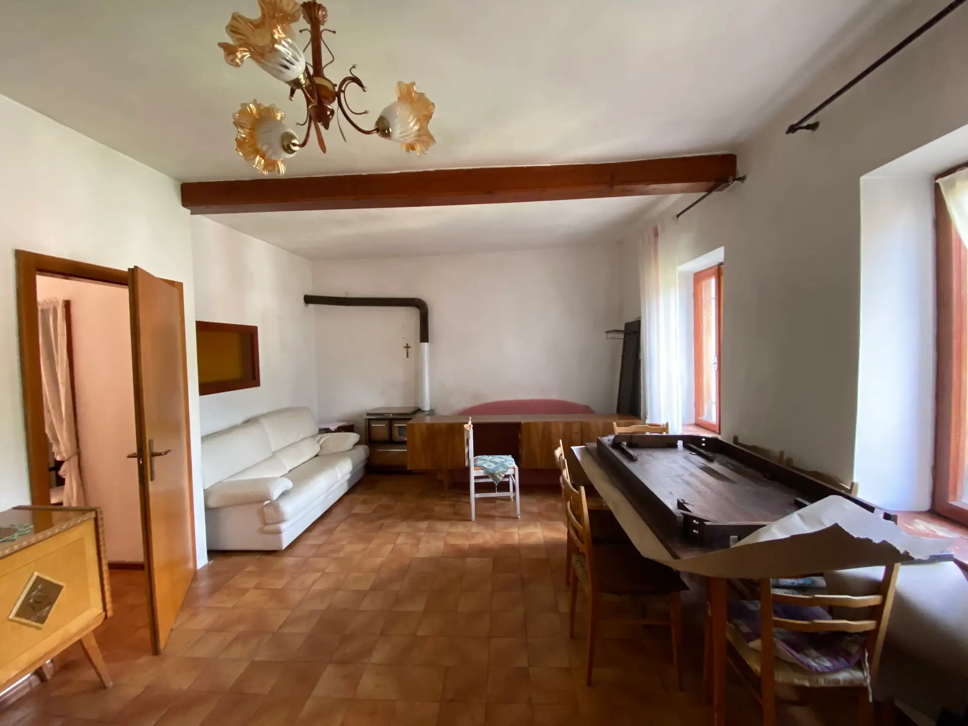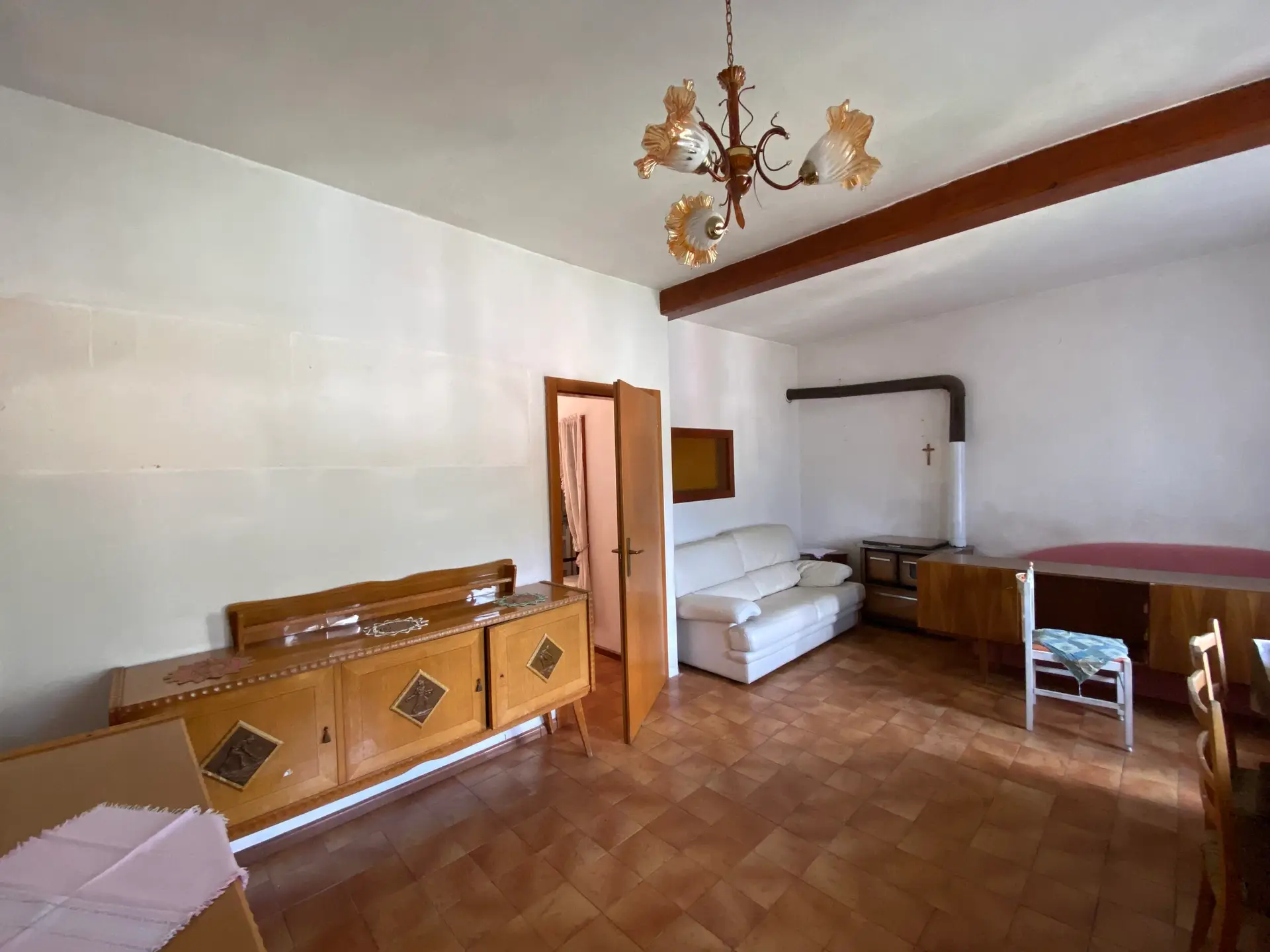 L’abitazione si sviluppa su più livelli e offre ampi spazi, con un grande potenziale per essere trasformata in una casa accogliente e funzionale, su misura delle esigenze di chi saprà valorizzarla. Al piano terra si viene accolti da un ingresso che si apre su un corridoio, dal quale si accede alla zona cottura separata e ben definita, ad un soggiorno luminoso e confortevole e a un bagno completo di doccia.